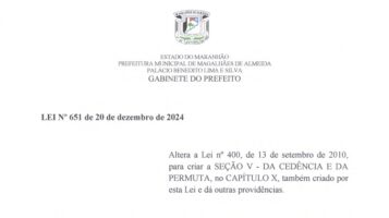 31 dez 2024DISPÕE SOBRE A EXONERAÇÃO DOS OCUPANTES DE CARGOS DE PROVIMENTO EM COMISSÃO NESTE MUNICÍPIO E DÁ OUTRAS PROVIDÊNCIAS. O PREFEITO MUNICIPAL DE MAGALHÃES DE ALMEIDA, Estado do Maranhão, no uso […]